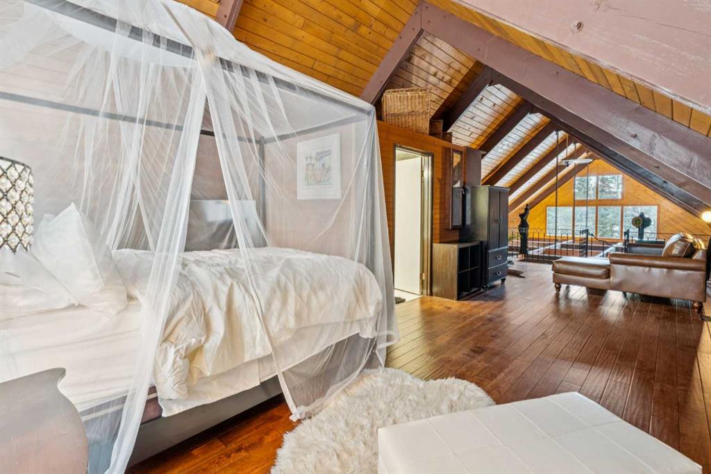 Experience ultimate privacy and serenity at this exceptional acreage in Water Valley. Nestled in a secluded setting just 30 minutes from Cochrane & Airdrie. This very private treed acreage is a mix of forested areas and fenced pastureland and open spaces. Located just 30 minutes from Cochrane, this one-of-a-kind acreage is ready for those seeking space, privacy, and direct access to the outdoors The 1.5 Story home offers over 2600 sq/ft of living space with 3 bedrooms and 2 baths, including a stunning Master loft bedroom with vaulted ceilings, ensuite and sitting area. The huge Living room features Open Beam Vaulted Ceiling, cozy up to the large wood burning fireplace on those cool winter nights or go out to your beautiful west facing deck on those warm summer days. This room also features, new hardwood flooring, and lots of windows. The Country kitchen has lots of room for those family gatherings with upgraded appliance lots of cabinetry, large eating area and opens to a large, enclosed deck. The basement is partly finished with a large Family room, Storage room, and laundry room. A new water well was drilled four year ago and supplies the home with over 10 gallons of water per minute. There is an Oversized Double Detached Garage/shop, a fenced dog kennel, chicken coup and a 40x60 Barn/shop that has electricity, water installed with natural gas available. The road from the house to the Barn has been paved. New shingles were put on the House, Barn, Garage and Shed. You will find this property enchanting. Please don’t let this one slip away. Call today to view!